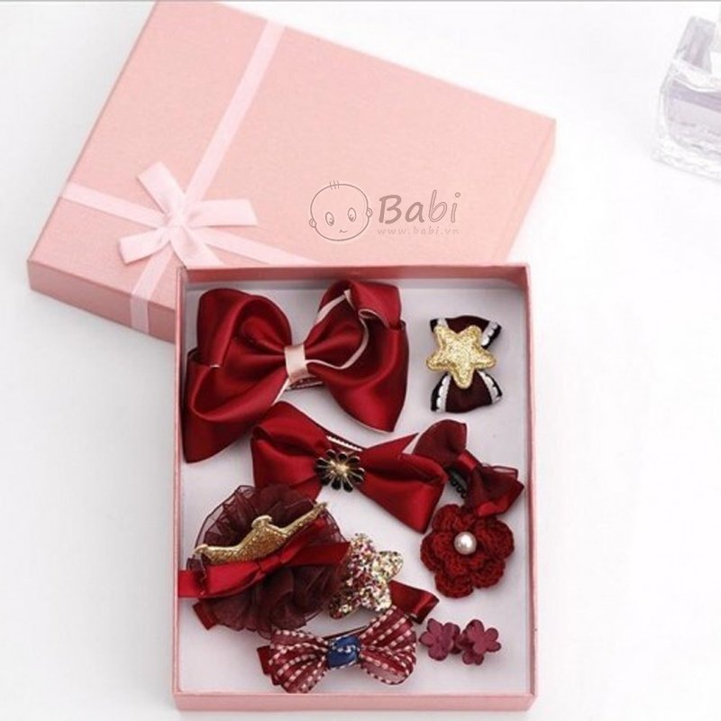 Hộp phụ kiện xinh xắn cho bé yêu gồm 9 món đa dạng với cột tóc, kẹp tóc cực xinh, màu sắc tươi sáng tôn lên nét hồn nhiên, xinh xắn của bé. Giá bán 85.000đ tại Babi.vn!